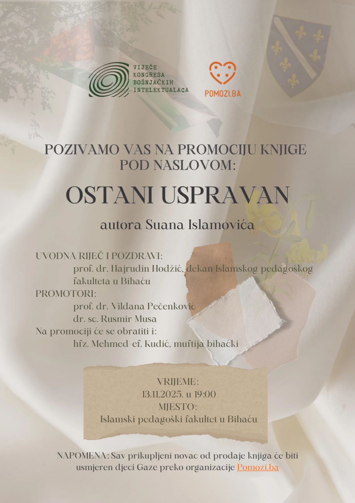 U organizaciji RO VKBI Bosanske krajine dana 13.11.2025. godine u amfiteatru Islamskg pedagoškog fakulteta u Bihaću sa početkom u 19.00 sati, održaće se promocija knjige “Ostani […]