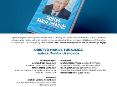 U organizaciji Regionalnog odbora Vijeća Kongresa bošnjačkih intelektualaca Bosanske krajine u Bihaću (Muzej AVNOJ-a) i Cazinu (Kulturni centar) održane su javne tribine „Kulturno naslijeđe Bosne – […]